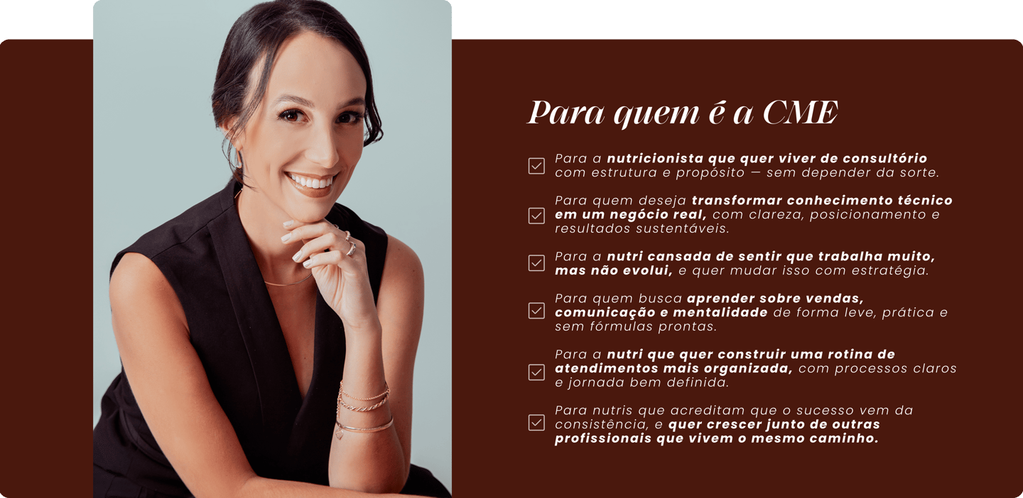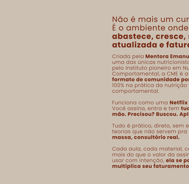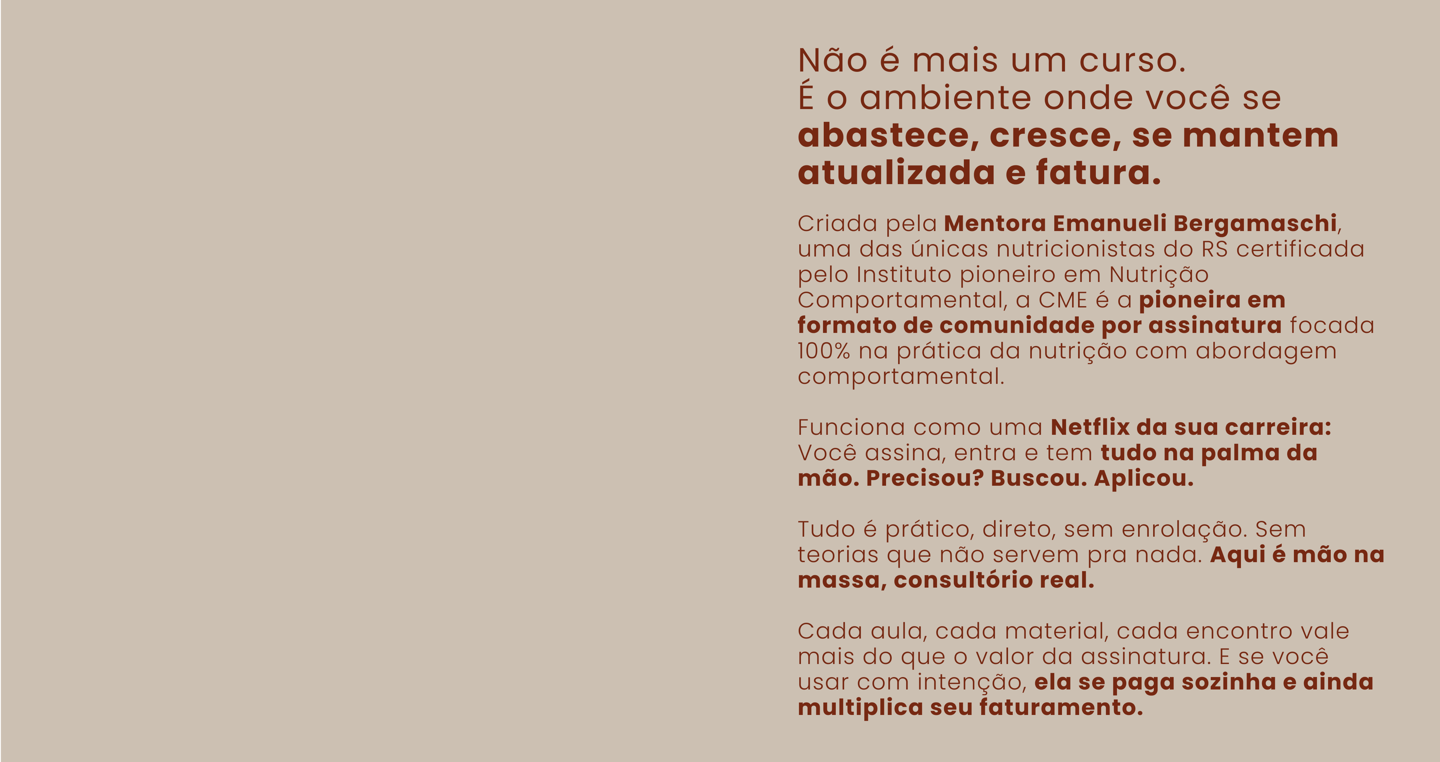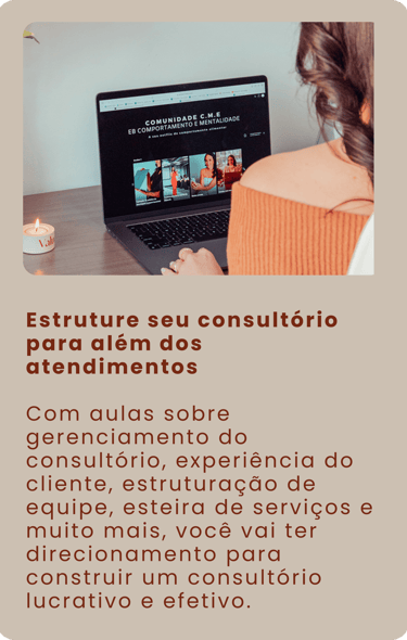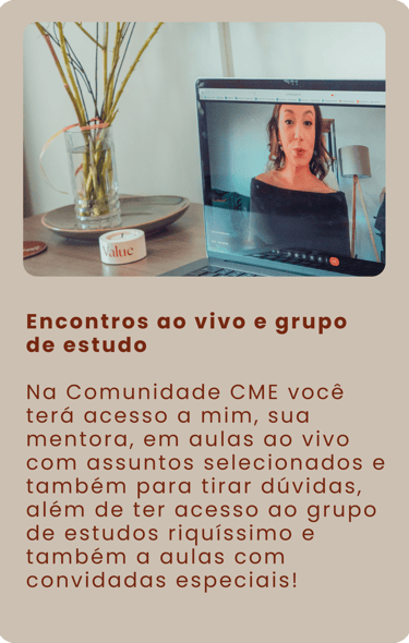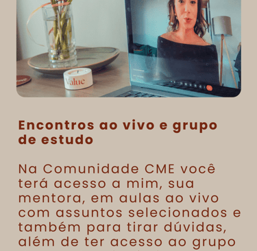 A Comunidade CME é um espaço contínuo de aprendizado e troca criado para te ajudar a construir um consultório com base sólida, comunicação estratégica e mentalidade de crescimento.