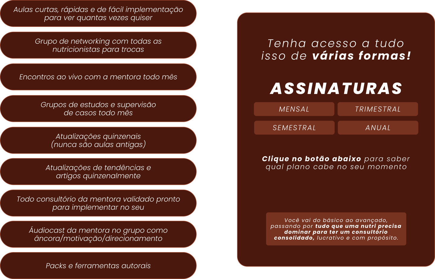 Sim, tudo mesmo. Atualizado, acessível e feito sob medida para a realidade da nutri que quer viver de consultório.